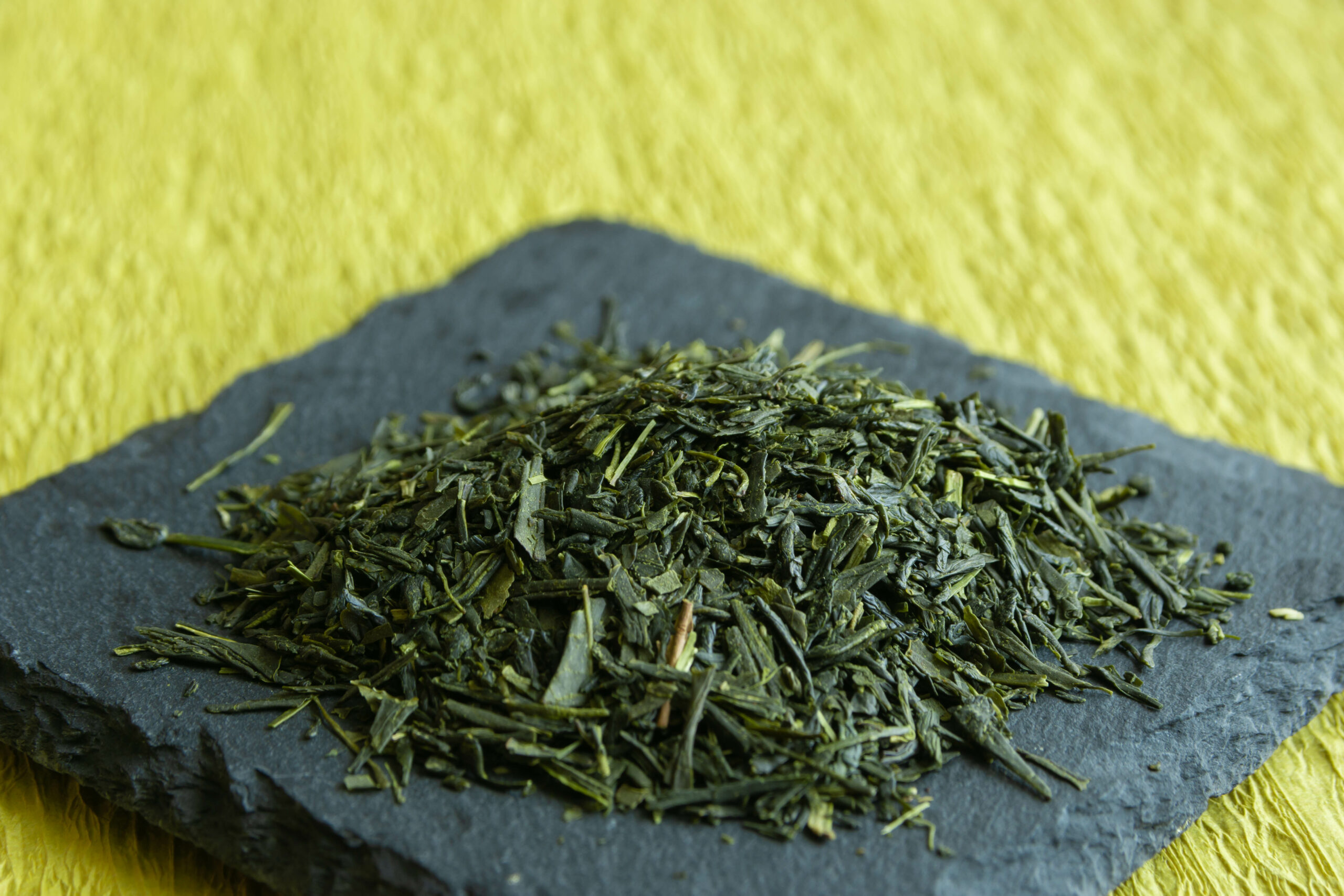 - 葉の形状と色沢 良質な乾燥茶葉は針のように細く締まり、光沢ある鮮やかな濃緑色です。